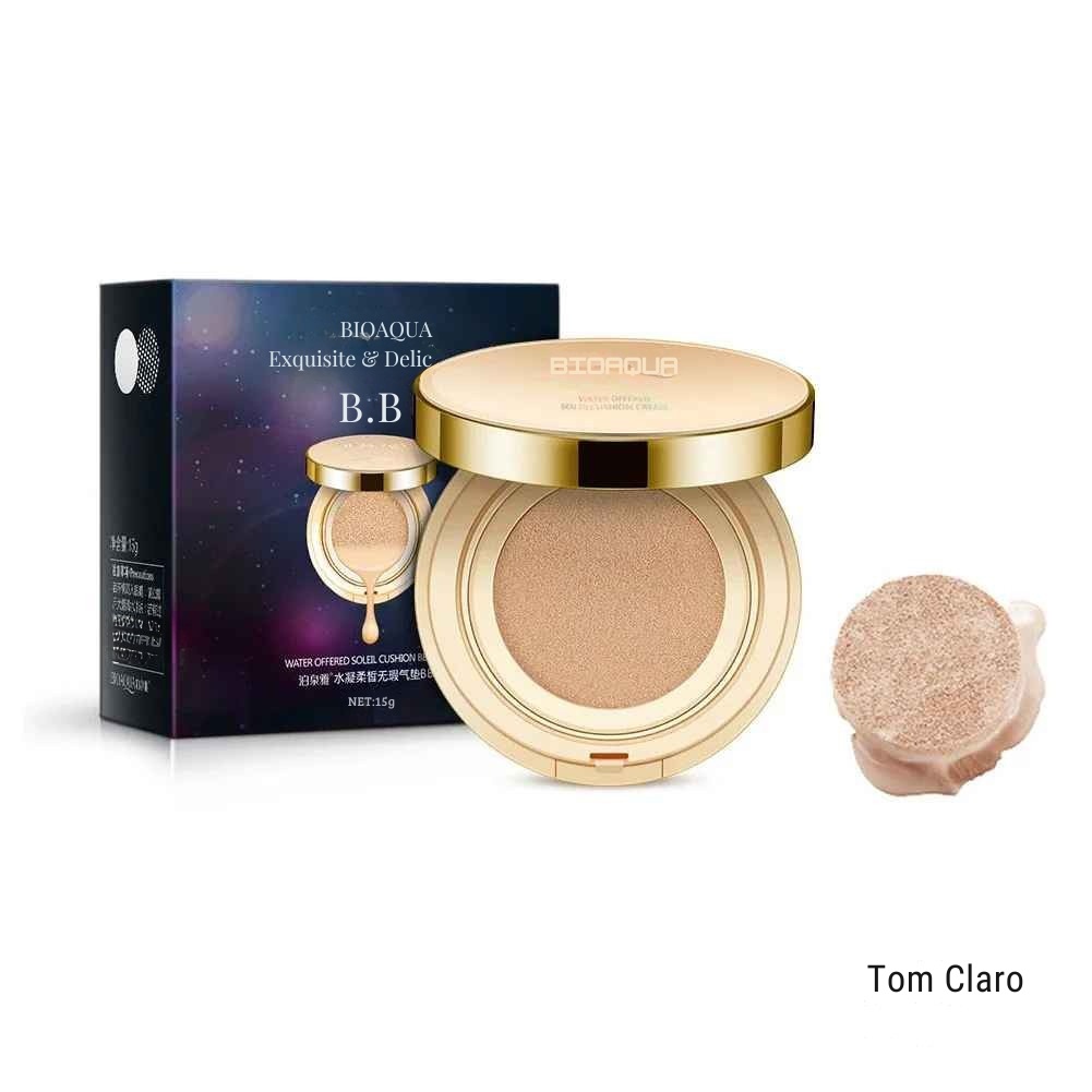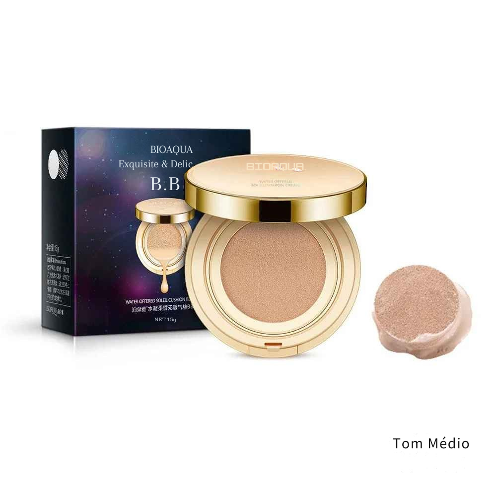 Descubra a Base Bioaqua Corretiva com esponja de ar. Cobertura perfeita, clareamento facial e hidratação intensiva em um único produto. Pele radiante e maquiagem impecável! 💖